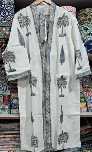 Home › Products › Ladies Bathrobe › Ladies Green Palm Tree Printed Cotton Bathrobe